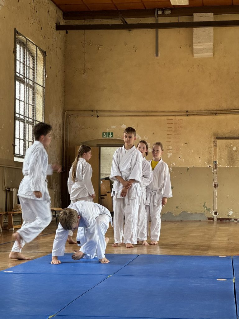 Anschließend demonstrierten die Kinder verschiedene Katas, bei denen die Kinder ihre Präzision und ihr Verständnis für die Bewegungsabläufe unter Beweis stellten. Jede Kata wurde mit viel Konzentration und Hingabe vorgetragen.
