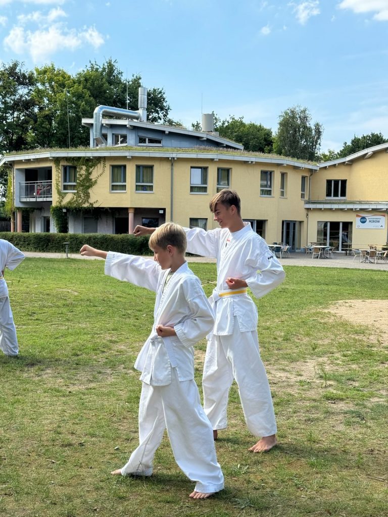 Der vierte Tag war ein echtes Highlight. Nach einer Trainingseinheit am Vormittag machten wir eine Bootstour zur Schlossinsel von Mirow, wo wir ein Picknick genossen und einen Stadtbummel machten. Am Abend stand dann ein Kata-Wettkampf auf dem Programm. Die Kinder zeigten ihr Können und lieferten sehr gute Leistungen ab. Auch an diesem Tag ließen wir es uns nicht nehmen, im See zu baden.