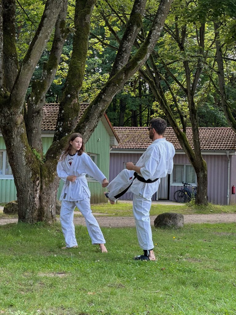 Am ersten Tag bezogen wir die Jugendherberge und lernten diese kennen. Nach dem Einrichten ging es gleich los mit einem abendlichen Training, bei dem wir uns auf Techniken und Katas konzentrierten. Der Tag endete mit einer erfrischenden Badeeinheit im See – der perfekte Abschluss für den ersten Tag.