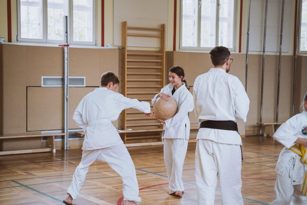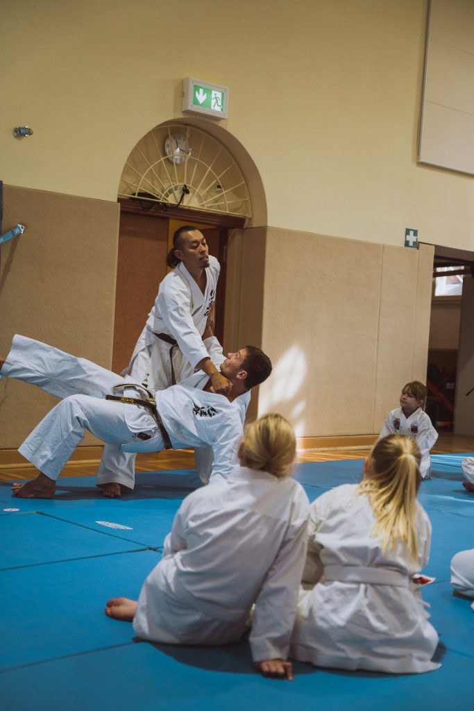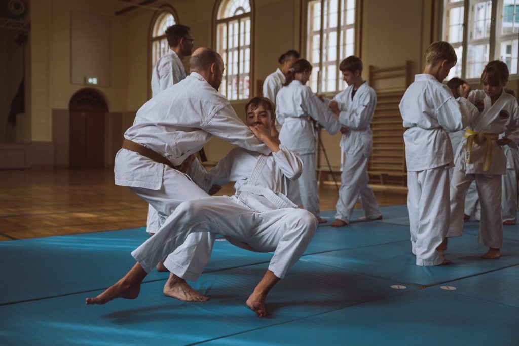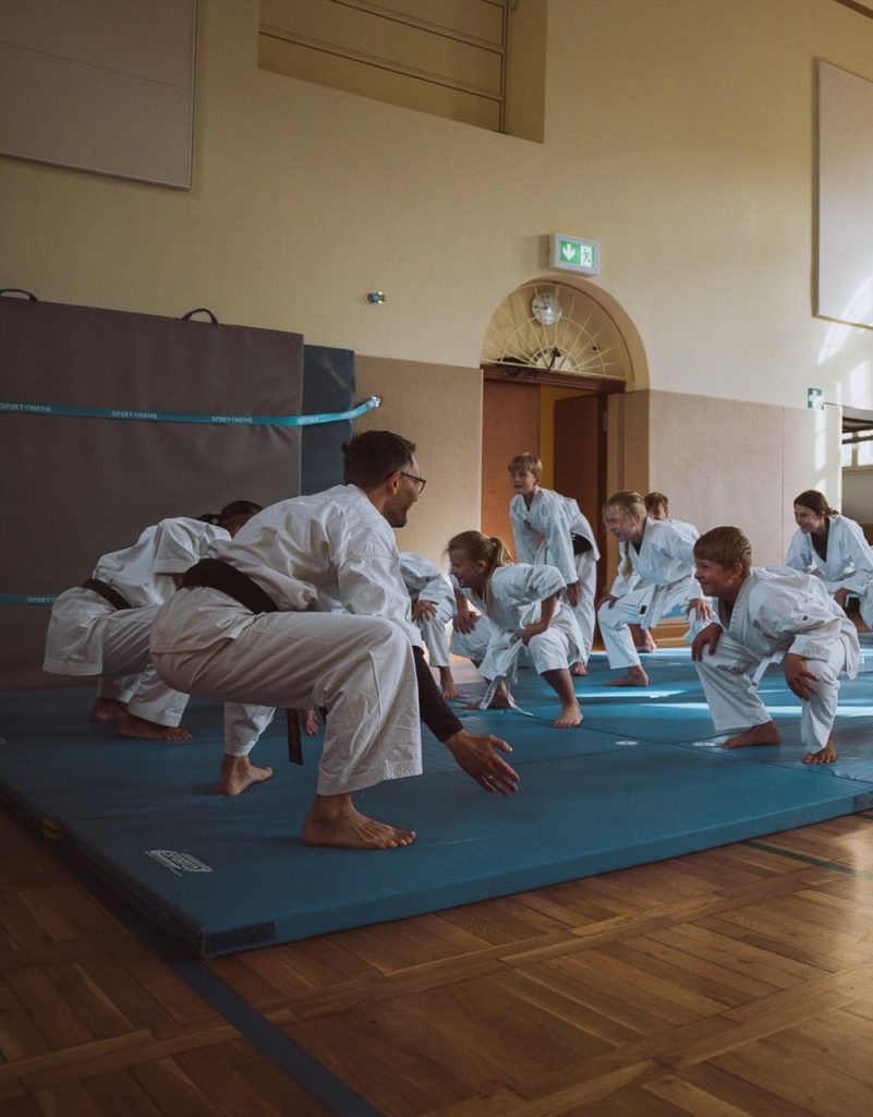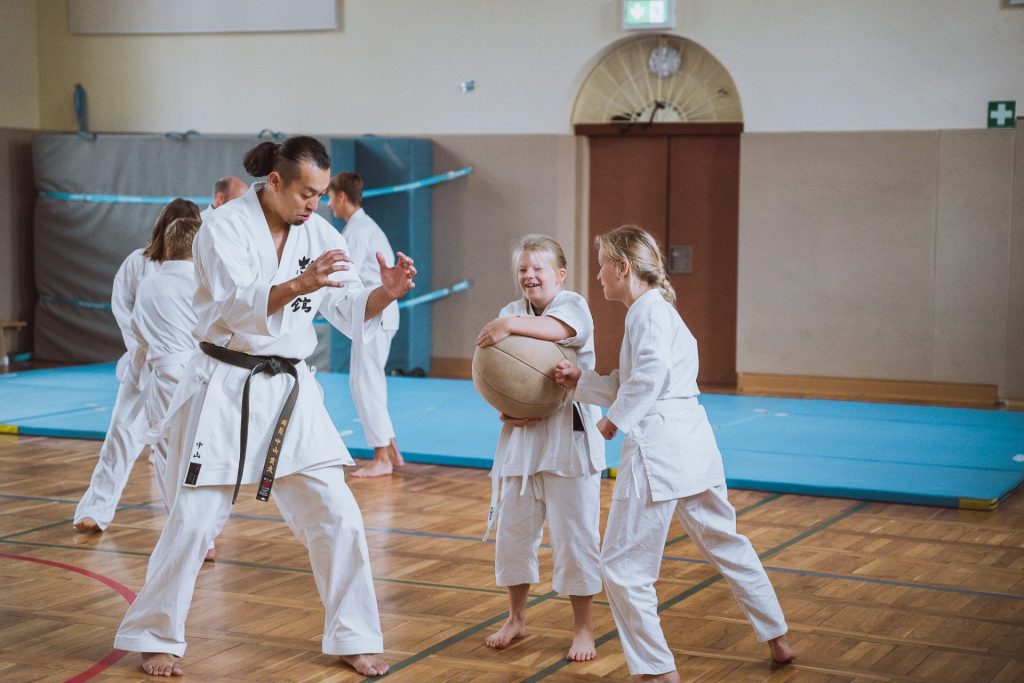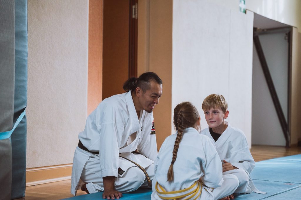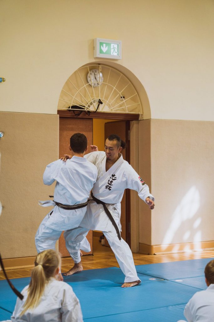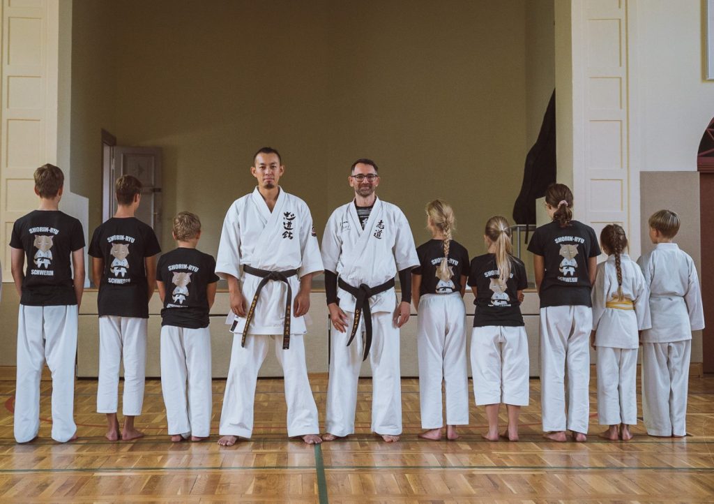 In Schwerin gab er einen Lehrgang sowohl für unsere Erwachsenen-Gruppe als auch für die Kindergruppe. Alle waren vollauf begeistert von den Techniken, die uns Taka beigebracht hat.